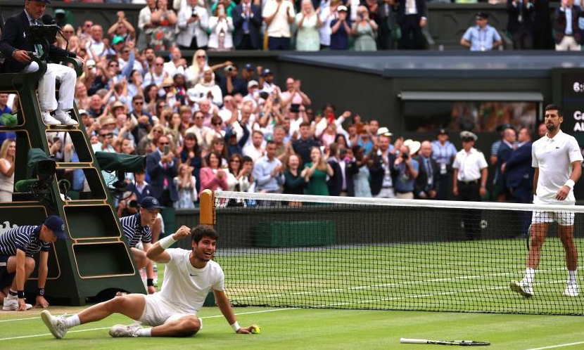 A világelső spanyol és a 2. helyen kiemelt szerb összecsapása szuperdöntőt hozott. Az történt, amit vártunk: öt szett, gigászi csata és egy hatalmas győzelem Wimbledonban, a férfi egyes döntőjében. A még mindössze 20 esztendős Carlos Alcaraz a londoni Grand Slam-torna aranymeccsén 1:6, 7:6, 6:1, 3:6, 6:4-re legyőzte Novak Djokovicsot, akit ebben a szentélyben Rafael Nadal és Roger Federer sem tudott soha felülmúlni, pedig egyszer a svájci sztárnak két meccslabdája is volt.