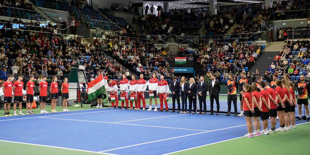A Multifunkcionális Sportcsarnokban már hetekkel ezelőtt elfogytak a jegyek a párharcra, ennek megfelelően a kezdéskor csaknem hatezren szurkoltak a lelátókon. A program felvezetéseként a magyar szövetség köszöntötte a 87 éves Szikszay Andrást, a legidősebb élő magyar Davis Kupa-játékost, egyben legendás edzőt.